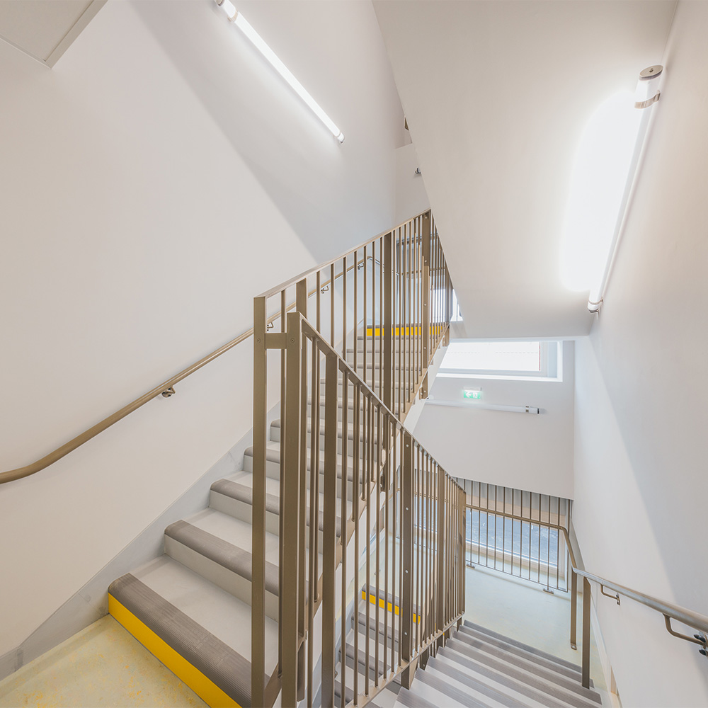 Réhabilitation des bâtiments A, B, C et D du collège Paul Éluard à Bonneuil-sur-Marne, ainsi que d’un bâtiment indépendant au rez-de-chaussée.
